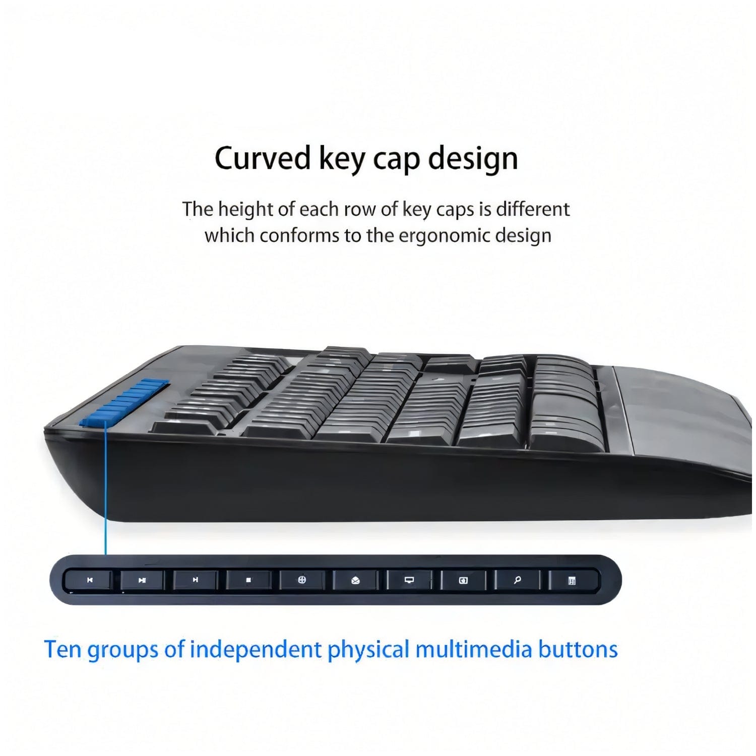 لوحة مفاتيح سلكية مريحة منحنية وصامتة وصامتة ولوحة مفاتيح وماوس عالي القوس بدقة 1600 نقطة في البوصة - وسادة معصم مدمجة، حامل قابل للتعديل لمساحة العمل والمكتب المنزلي