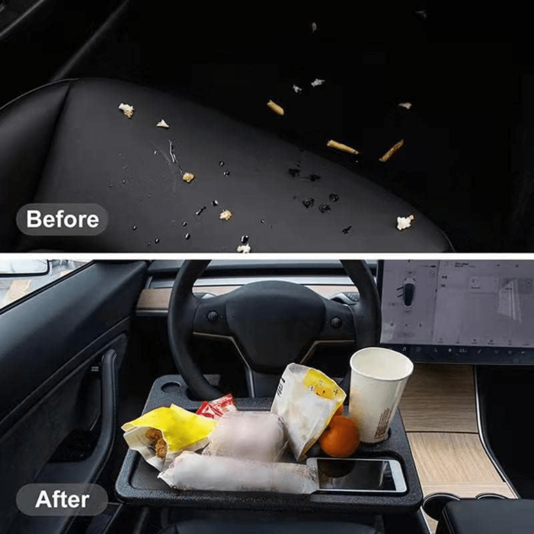 قم بترقية طراز Tesla Model 3 أو الطراز Y الخاص بك من خلال طاولة عجلة القيادة من Clevisco، وهي مزيج فاخر من العملية والأناقة. يعمل هذا الملحق متعدد الاستخدامات على إنشاء منطقة لتناول الطعام ومحطة عمل، مما يغير مساحة القيادة الخاصة بك. تم تصميمه بدقة ليكمل جماليات تيسلا، فهو يتكامل بسلاسة مع الحفاظ على المظهر الفاخر. فهو مصنوع من مواد صديقة للبيئة من الدرجة الأولى، ويوفر تجربة لمس ومتانة استثنائية. استمتع بالتركيب السهل وأعد تعريف الفخامة والأداء الوظيفي في سيارة تيسلا الخاصة بك مع طاولة عجلة القيادة من كليفيسكو