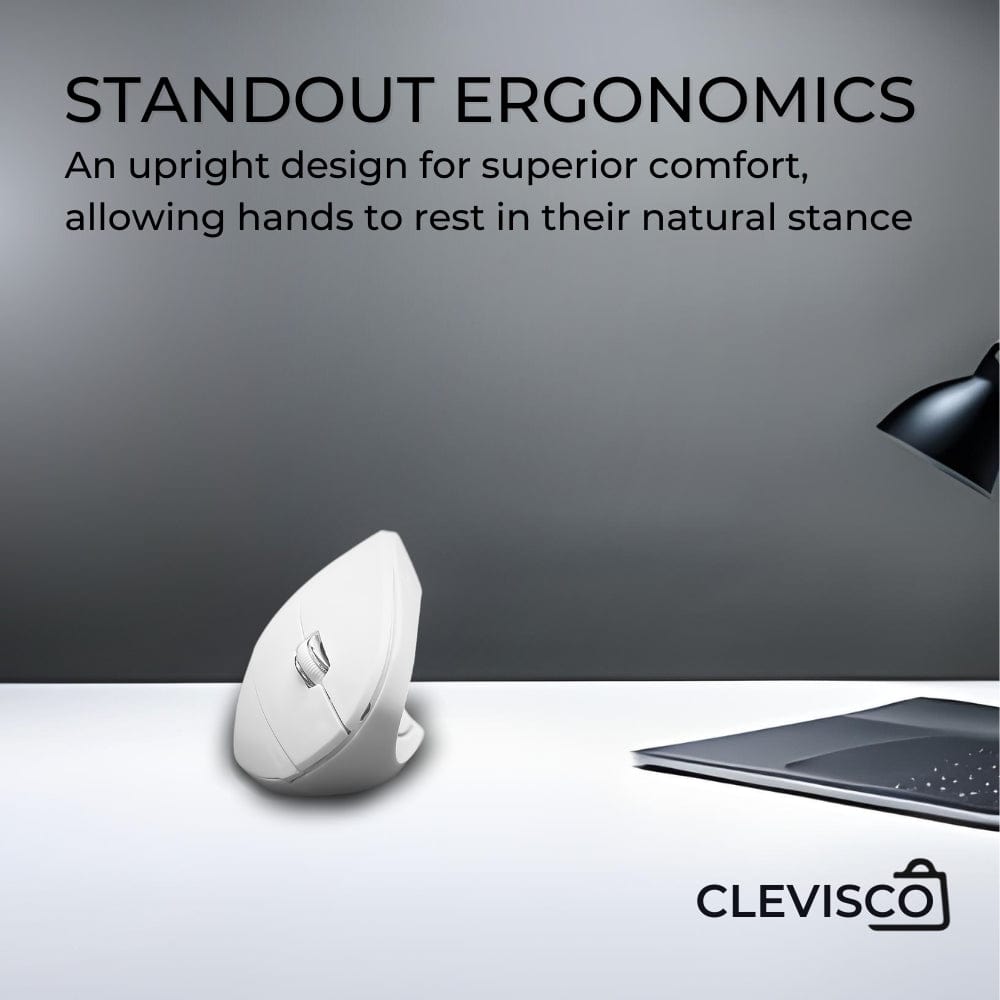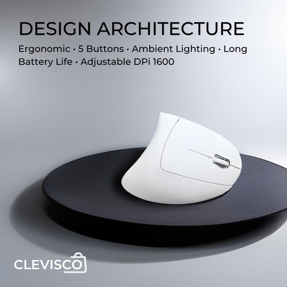 استمتع بالراحة المريحة مع الماوس العمودي اللاسلكي Clevisco 2.4G، المصمم للأيدي الكبيرة والمتوسطة، والذي يتميز بدقة 1600 نقطة في البوصة و5 أزرار.