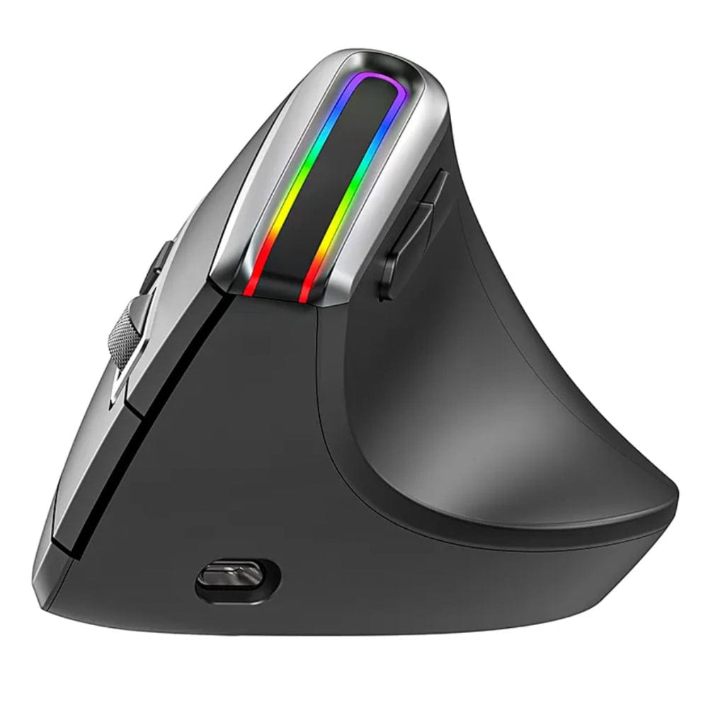 Wireless ergonomic mouse with alloy scroll wheel, RGB lighting, multi-mode connectivity, USB-C fast charging, and 2400 DPI precision.