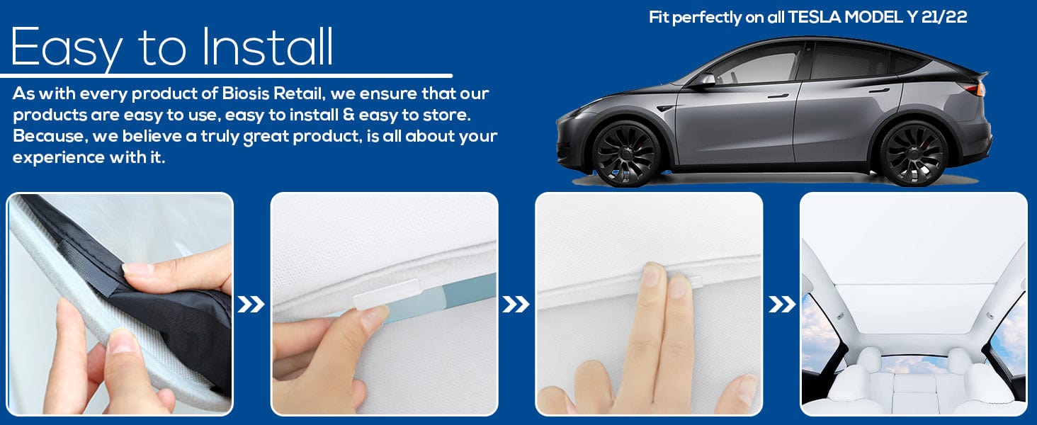 Tailored Fit: Designed specifically for the Tesla Model Y, our sunshades promise a flawless fit for both the top and rear glass roofs, enhancing your car's aesthetics with their sleek, modern design.