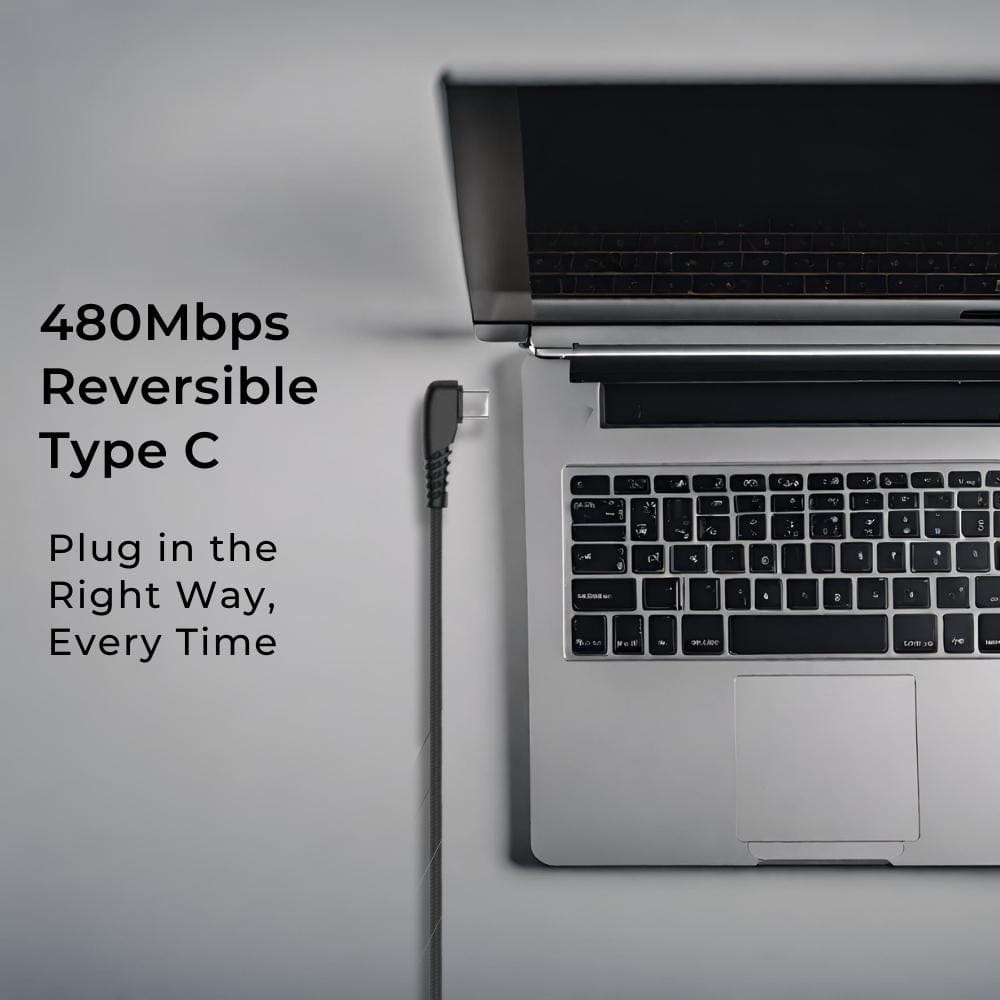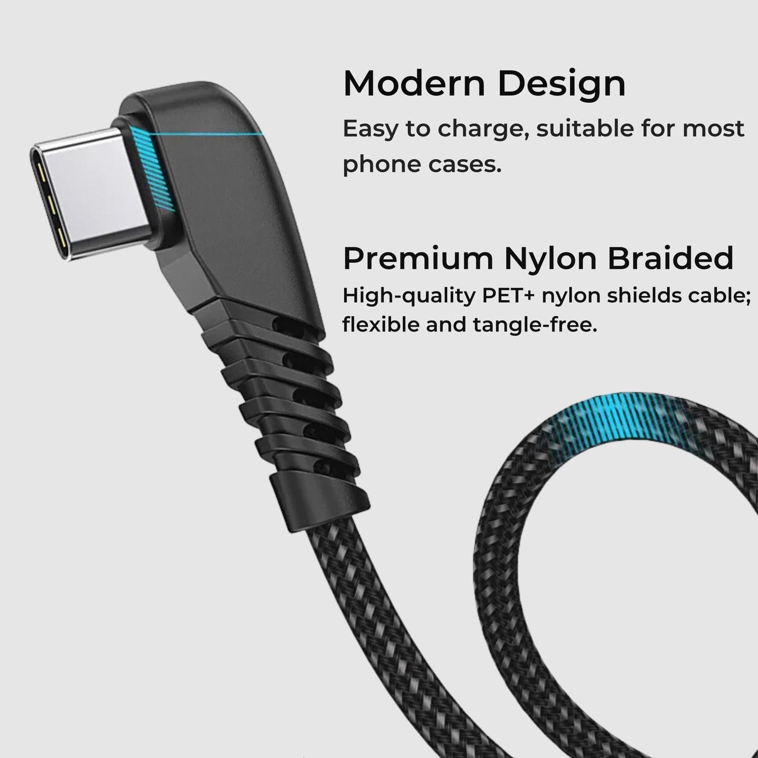 90 Degree gaming right angle USB Type C, (2pc)Nylon Braided 5000 cycles Durable 1 Meter Cable for Fast Charge & Data Sync, Compatible with iPhone, iPad, Android, Samsung & other devices
